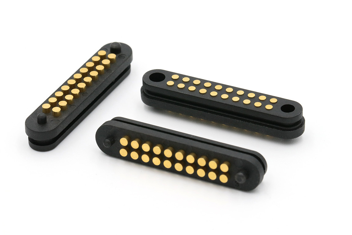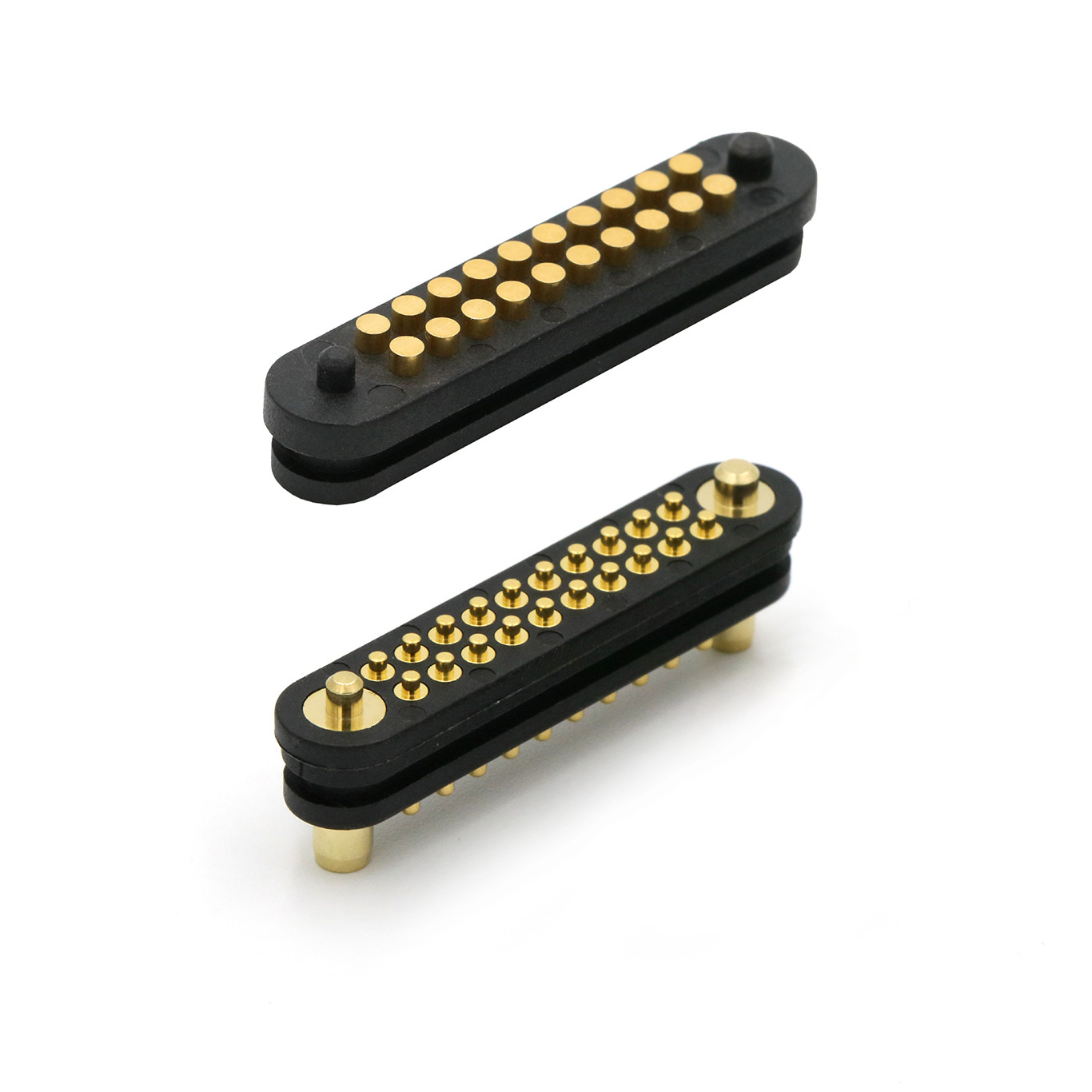 Double row 2x20pins through-hole type spring loaded connector pogo pin connector for medical products, brass C3604 HTN black housing male spring connector female pin connector.UPE provide professional POGO PIN CONNECTOR customization service