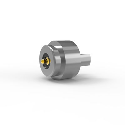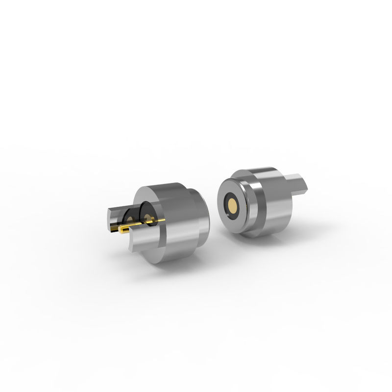 Round type magnetic charger connector,plating 5U" Min Au over 60~100U"N for brass and plunger, the housing material is black HTN+30%GFUL94 V-0, the shell is brass C3602Plating Ni, the male and female magnetic connector is applied to shoes,heating the throw pillow, charging, etc.