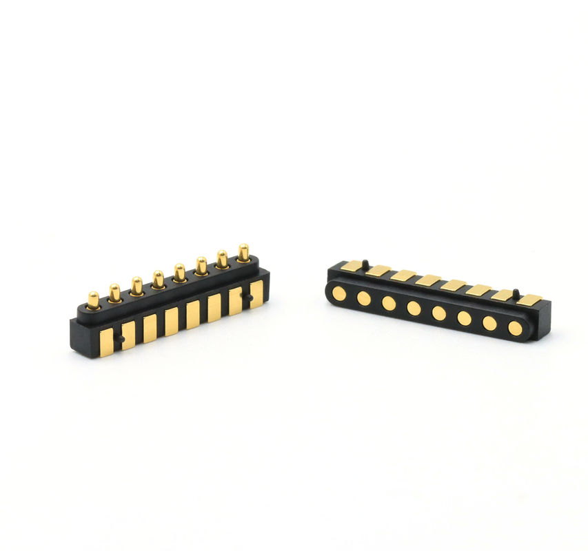 Lead-freeC680 2.54mm pitch 8pin side-mounted spring loaded connector with 3A.UPE is professional custom manufacturer in manufacturing connector componentsm including POGO PIN, POGO PIN connector, spring thimble and various probes.Different products and solutions can be designed according to different customer needs